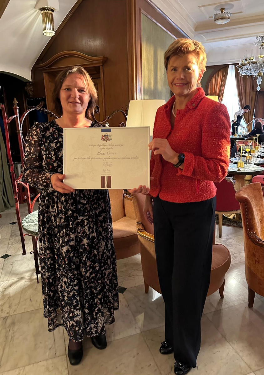 Ministre personīgi pasniedza Latvijas Republikas Ārlietu ministrijas Atzinības rakstus Aigai Ožehovskai, Ilonai Čeičai un Marijai Fadulai – par nozīmīgu ieguldījumu latviskās kultūras identitātes saglabāšanā un turpināšanā, pilsoniskās līdzdalības stiprināšanā, kā arī Latvijas tēla spodrināšanā.